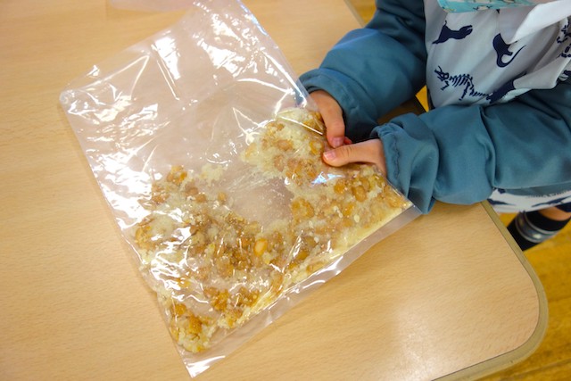 粒の状態だったもち米が、だんだん粘ってきてお餅になっていくのは見ていて面白かったですね~