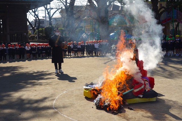 - 3回目の訓練では、消防士さんが来て、消防自動車や色々な道具を間近で見せていただけるので楽しみにしています。