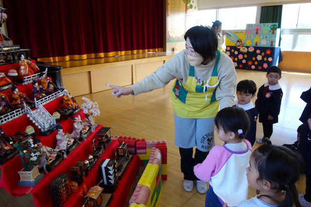 - おひな様を飾り、ひなまつりの由来を聞きます。これまで育ててくれた親への感謝も伝えます。