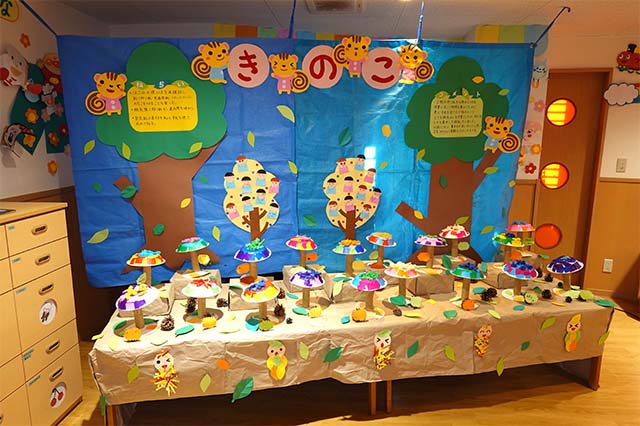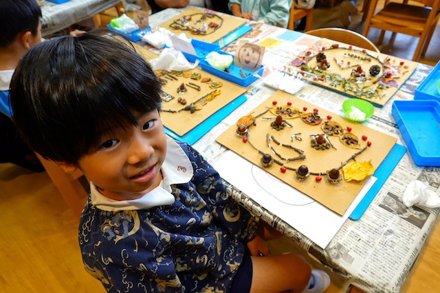秋ならではの木の実や葉っぱ等を使った製作はとても味わいがあるものに出来上がります。