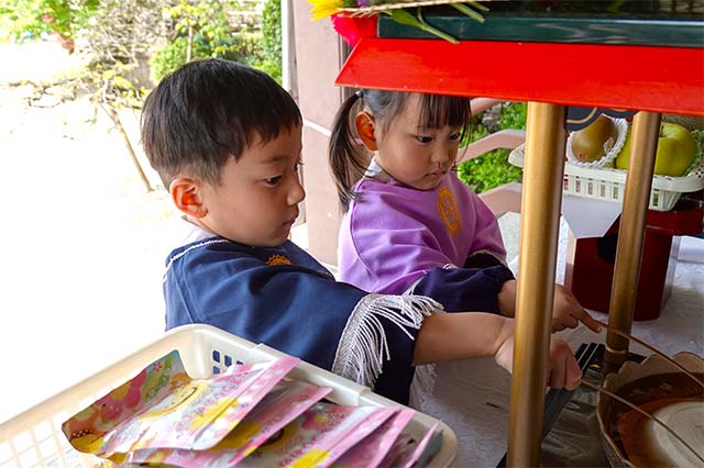 - 年長さんが小学生へ行く為のキップを手にします。