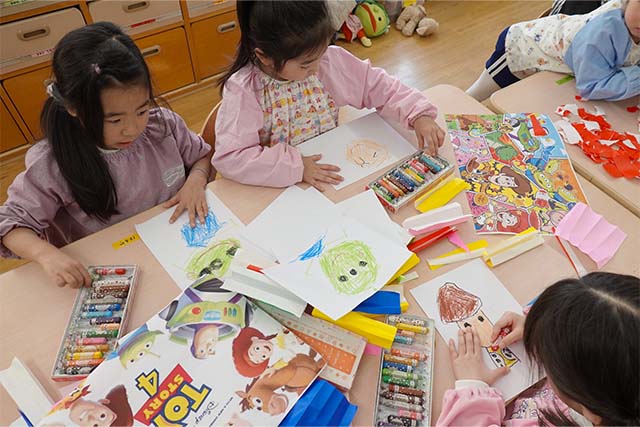 - 絵画、造形を中心とした、保育参観です。